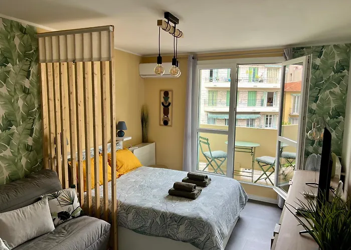 The 25 m^2 Palm Leaf Studio Nice is located an 18-minute walk from Notre-Dame de Nice and 2.2 km from Nice Opera. Staying in the apartment, nestled in the vicinity of St Nicholas Cathedral, guests can relax on a terrace.